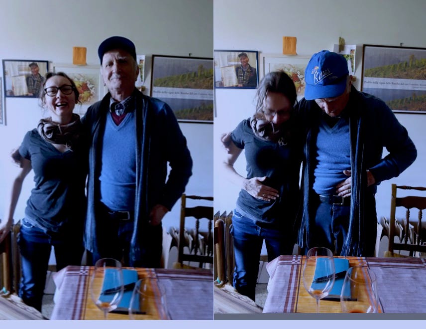 Lorenzo Accomasso of La Morra is an outsider as well as a holdout for tradition. The winemaker is now in his 70s, and only speaks Piemontese dialect. Which is why Giorgio, a Piemontese man who lives in and imports wine into Australia, and wants Lorenzo for his portfolio, convinced Marta Rinaldi (Giuseppe’s daughter) to come along and interpret.